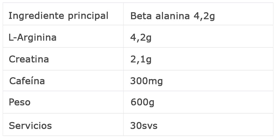Especificaciones técnicas de Pre entreno Kreator: