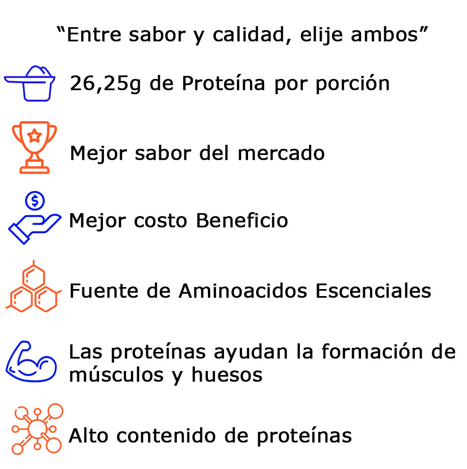 ♦️Whey Pro Fusion de Amix combina proteína concentrada y aislada de suero para entregarte una fuente de alta calidad con excelente valor biológico, ideal para potenciar el crecimiento muscular y acelerar la recuperación. Su fórmula aporta alrededor de 75% de proteína pura por porción, junto a BCAA y glutamina que favorecen el rendimiento y reducen la fatiga. Además, incorpora enzimas digestivas DigeZyme® que mejoran la absorción y hacen la digestión más ligera, incluso en consumos diarios. Su proceso de filtrado a baja temperatura mantiene intactos los nutrientes, asegurando una proteína más eficiente, limpia y fácil de asimilar.