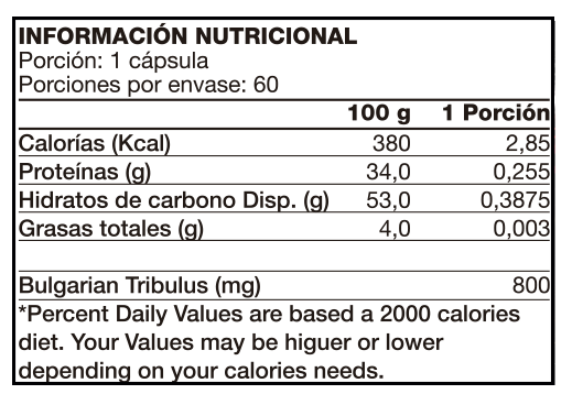 🔸Extracto concentrado de alta potencia. Cada cápsula aporta 800 mg de Tribulus, ofreciendo una fórmula concentrada y efectiva.
